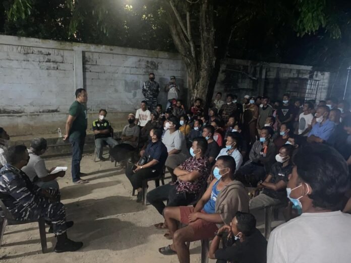 ACTUALNEWS.ID, Batam – Bertempat di Pos Pengamat Pantai Stres Jodoh, Babinpotmar Lanal Batam Peltu Eko Tandalir mengadakan Sosialisasi kepada Masyarakat Maritim Kawasan Pantai Stres sebanyak 63 (enam puluh tiga) orang terkait pekerjaan masyarakat sekitar sebagai pencari/pembeli besi tua pada kapal-kapal yang lego jangkar atau kapal yang sedang jalan di Perairan Batam/Selat Singapura. Sabtu (23/04/2022).