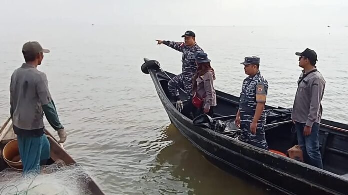 ACTUALNEWS ID, Dumai,- Babinpotmar Pos TNI AL (Posal) Selat Panjang jajaran Lanal Dumai bersinergi dengan Dinas Kementerian Kelautan dan Perikanan RI Kabupaten Meranti melaksanakan sosialisasi keselamatan pelayaran kepada nelayan pesisir yang menangkap ikan dengan menggunakan jaring di wilayah Perairan Meranti, Riau, Jum’at, (22/07/2022).
