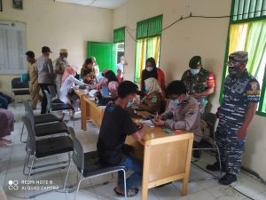 Babinpotmar Posal Tanjung Tiram Kopda Mawardi dampingi 44 warga vaksin Sinovac dengan rincian dosis 1 sebanyak 14 orang dan dosis 2 ada 30 orang di Kantor Desa Sukamaju, Tanjung Tiram.