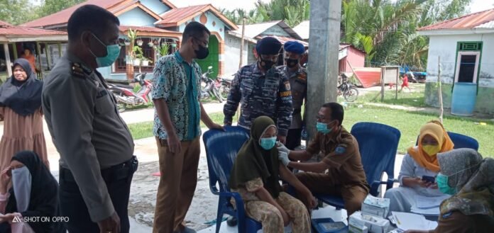 Babinpotmar Posal Sei Berombang Serda Syahbuddin dampingi 25 masyarakat pesisir vaksin jenis Pfizer dosis 1 sebanyak 6 orang dan dosis 2 sebanyak 19 orang di Dusun I Desa Sei Saka Kecamatan Panai Hilir Kabupaten Labuhan Batu.
