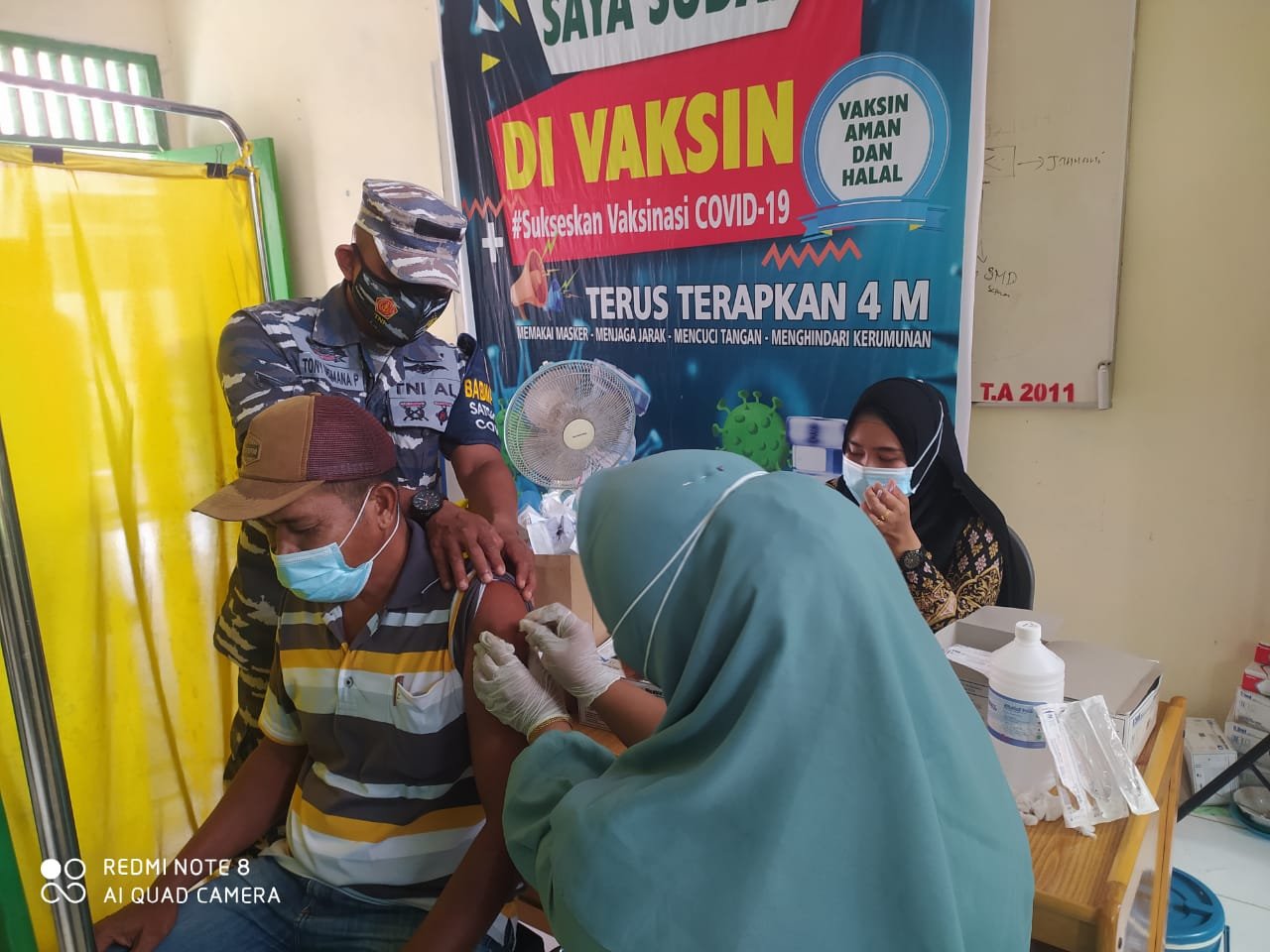 Babinpotmar Posal Sei Berombang Serda Syahbuddin dampingi vaksin 154 masyarakat pesisir jenis Sinovac dengan rincian dosis 1 sebanyak 142 orang dan dosis 2 sebanyak 12 orang di Puskesmas Sei Berombang Kecamatan Panai Hilir.