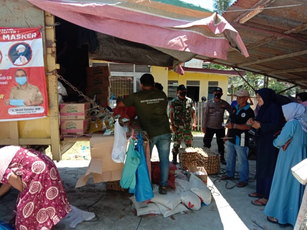 ACTUALNEWS.ID, Aceh Timur – Babinsa Koramil 06/Darul Aman Kodim 0104/Aceh Timur Koptu Nazaruddin bersama Bripka Efendi Bhabinkamtibmas Polsek Darul Aman memantau jalannya pelaksanaan pasar murah di halaman kantor Kecamatan Darul Aman, Kabupaten Aceh Timur, Rabu (30/03/2022).