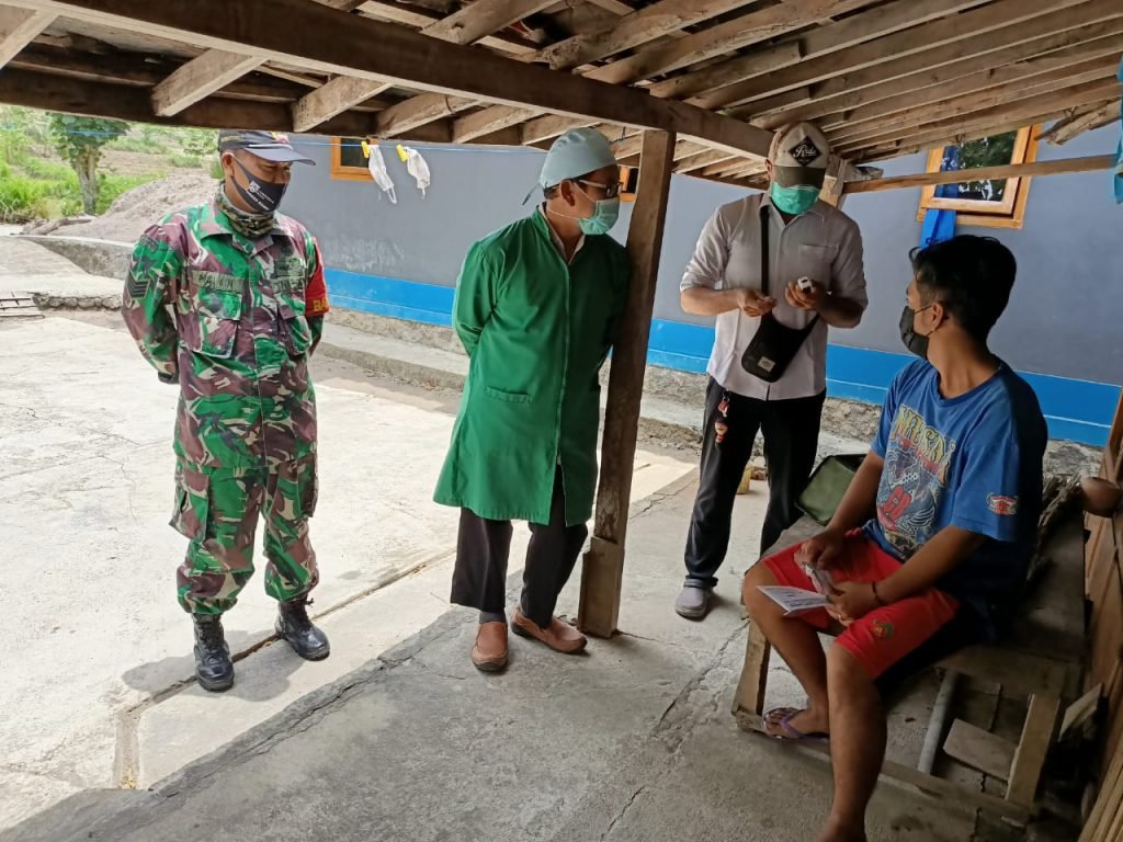 ACTUALNEWS.ID, Boyolali – Bintara Pembina Desa (Babinsa) Sari Mulyo Koramil 18 Kemusu Kodim 0724 Boyolali, Serma Paimin mendampingi petugas kesehatan dari Puskesmas Kemusu dan Team Traking Desa melaksanakan Tracing Covid 19 kepada masyarakat Dukuh Padasmalang Desa Sarimulyo Kecamatan Kemusu Kabupaten Boyolali, Kamis (7/10/2021).