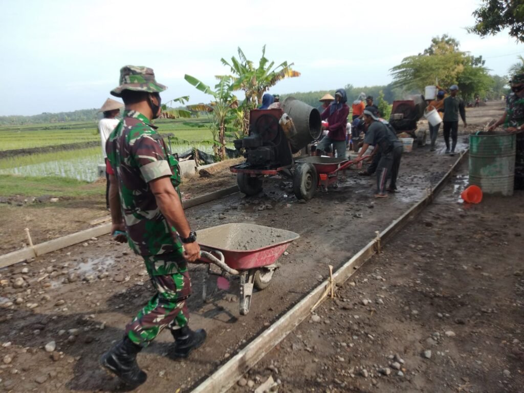 ACTUALNEWS.ID, Sragen – Serka Darwanto Babinsa Kaliwedi anggota Koramil 06/Gondang Kodim 0725/Sragen melaksanan giat Bakti TNI dalam rangka membantu Kerja Bakti Pengecoran Jalan sepanjang 335 m di Dk. Dimoro Rt 17, Desa Kaliwedi, Kecamatan Gondang, Kabupaten sragen, Minggu (27/03/2022)
