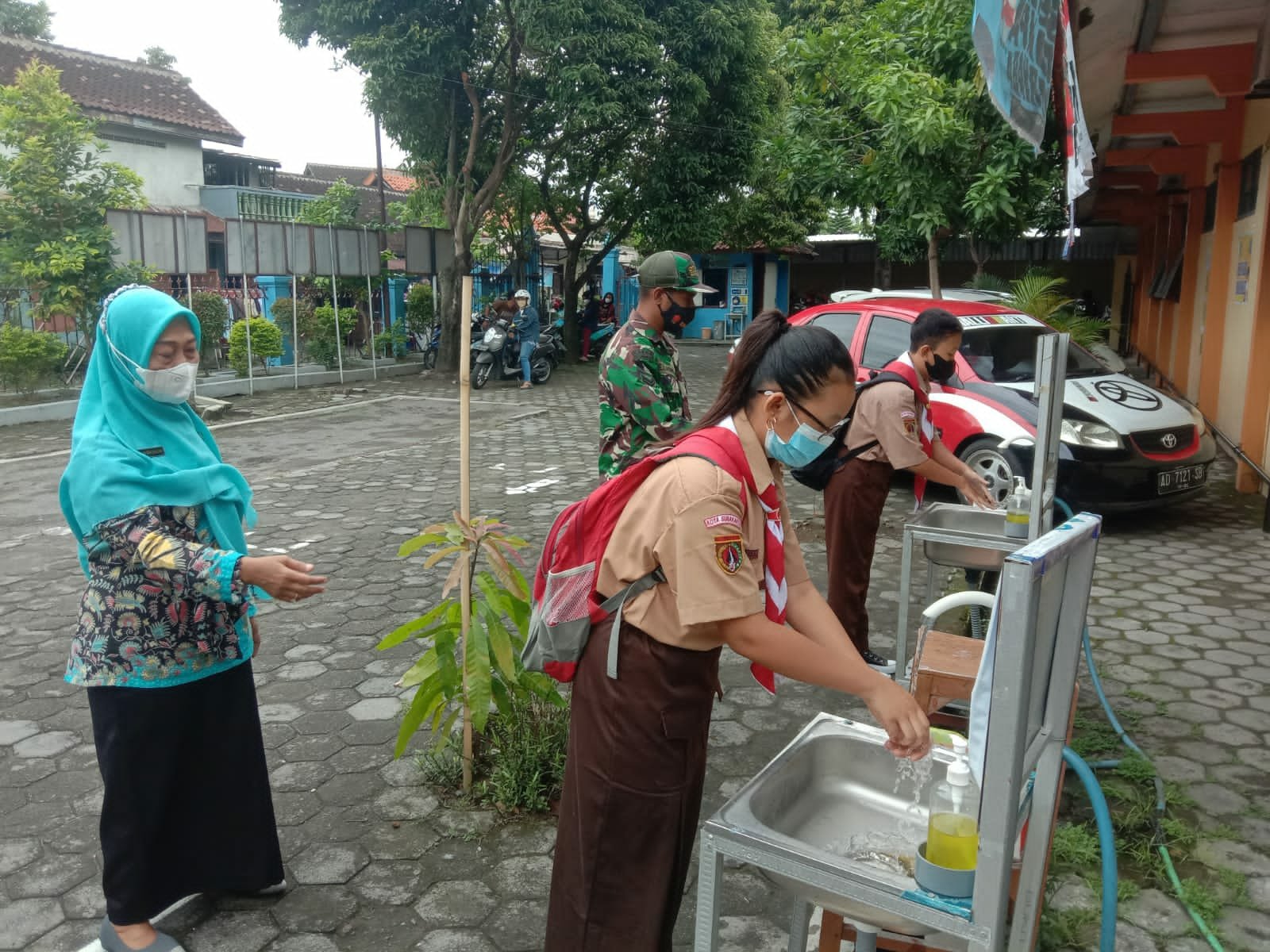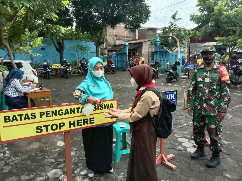 Babinsa pantau langsung Pelaksanaan PTM ( Pembelajaran Tatap Muka )di SMPN 22 Surakarta yang Saat ini sudah menerapkan protokol kesehatan dengan baik. Dan mengajak Kepsek, Guru dan Staf mengecek dan mengawasi diberlakukannya proses belajar mengajar tatap muka harus mematuhi ketentuan peraturan yang dianjurkan Pemerintah Kota Solo selama pandemi Covid-19.