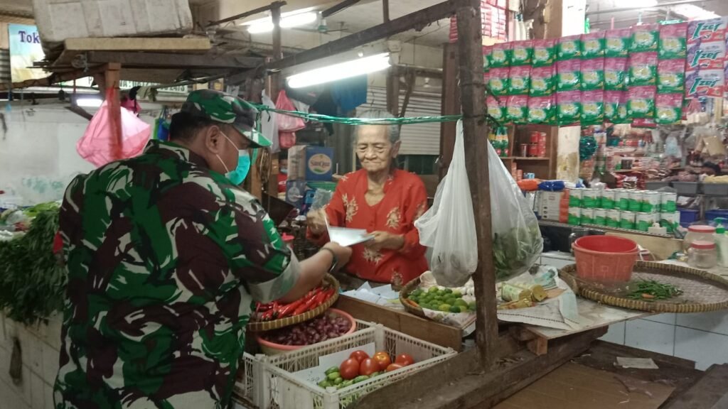 ACTUALNEWS.ID, Kodim 0503/JB, Koramil 01/TS – Jakarta Barat, Pasar merupakan salah satu obyek vital yang mana menjadi tempat kerumunan dan juga terjadinya interaksi pengunjung dan pedagang pasar. untuk mencegah penyebaran virus covid-19 di central ekonomi seperti pasar tentunya sangat menjadi pantauan utama para Babinsa Koramil 01/Tamansari Kodim 0503/Jakarta Barat. (Minggu, 03/04/2022)