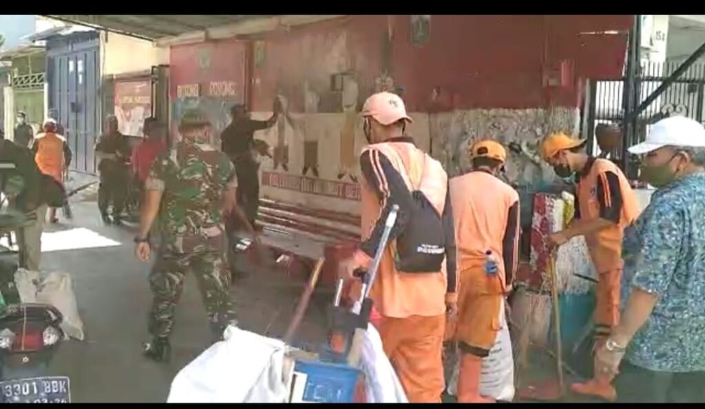 Menindak lanjuti atensi Danramil, Babinsa Serka Mukoddas melaksanakan kegiatan Gotong Royong bersama satpol PP, PPSU, PKK, Karang Taruna dan Warga di Wilayah Rw 07.