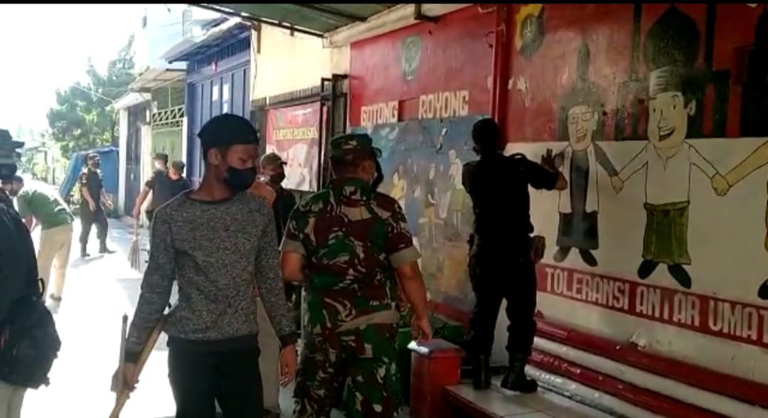 Menindak lanjuti atensi Danramil, Babinsa Serka Mukoddas melaksanakan kegiatan Gotong Royong bersama satpol PP, PPSU, PKK, Karang Taruna dan Warga di Wilayah Rw 07.