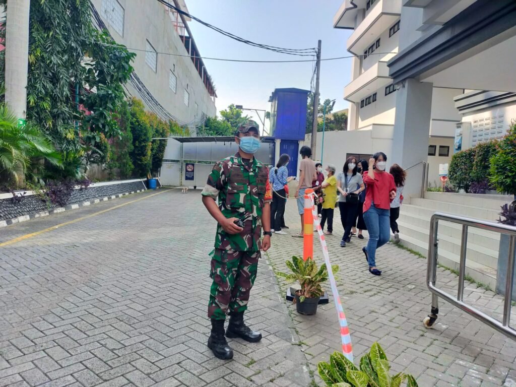 ACTUALNEWS.ID, Jakarta – Babinsa Koramil 01/Tamansari Kodim 0503/Jakarta Barat, Sertu Suharno melakukan pengamanan terhadap masyarakat yang sedang melaksanakan Misa Pertama Minggu Paskah. Tidak hanya pengamanan, Babinsa juga melaksanakan Pengawasan penerapan protokol kesehatan di sejumlah Gereja yang berada di wilayah teritorial Koramil 01/TS. Minggu (17/04/2022).