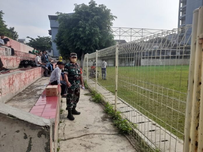 ACTUALNEWS.ID, Kodam Jaya, Kodim 0503/JB – Babinsa Koramil 01/Tamansari Kodim 0503/Jakarta Barat, Sertu Rusnanto melaksanakan pengamanan giat Turnamen Sepak Bola Liga Junior ASKOT PSSI Jakarta Barat yang di laksanakan di Stadion sepak bola Tamansari, Jalan Mangga Besar VI Utara, Rt. 08/01, Kel. Tamansari, Kec. Tamansari Jakarta Barat. Minggu, 12 Juni 2022.