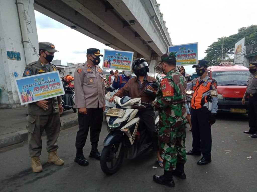 Kegiatan sosialisasi PPKM dan pembagian masker dipimpin langsung Kapolsek Tambora Kompol M.Faruk Rozi dengan menurunkan 23 petugas gabungan dari Koramil 02/TB, Polsek Tambora, Pol PP, Damkar dan Dishub