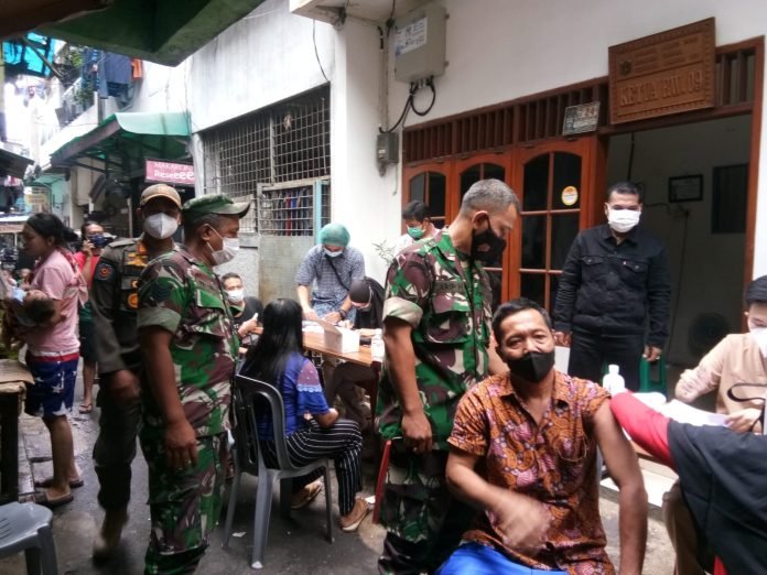 ACTUALNEWS.ID, Jakarta – Babinsa Koramil 02/TB Serma Patton bersama Sertu Sarif. J dampingi kegiatan vaksinasi yang digelar Puskesmas Kelurahan Jembatan Besi di Sekretariat RW 09. Jl. Jembatan Besi X Rt 07 Rw 09 Kelurahan Jembatan Besi Kecamatan Tambora, Jakarta Barat.Kamis (30/12)
