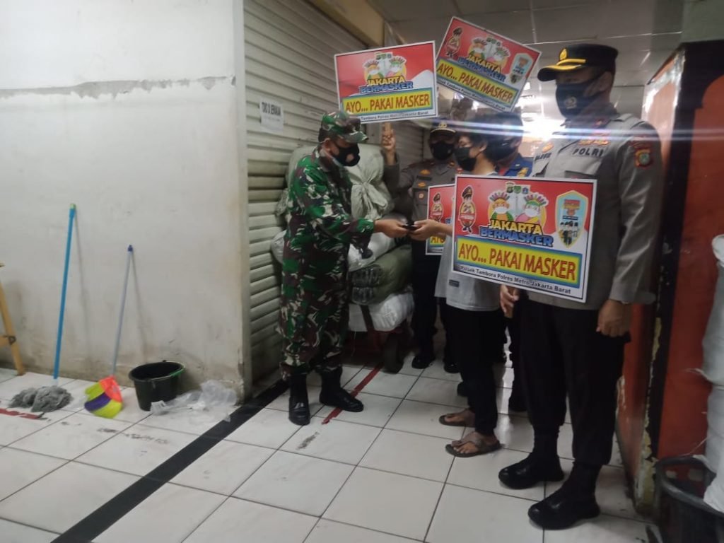 ACTUALNEWS.ID, Jakarta -Dalam rangka upaya pengendalian penyebaran Covid-19 di wilayah binaan.Babinsa Koramil 02/TB melaksanakan sosialisasi Pemberlakuan Pembatasan Kegiatan Masyarakat (PPKM) di Pasar Perniagaan Jalan Perniagaan Raya Rt 01/01 Kelurahan Tambora Kecamatan Tambora Jakarta Barat.
