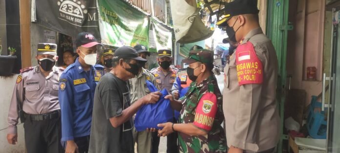 Babinsa Koramil 02/TB Kodim 0503/JB Bersama Tiga Pilar Salurkan Bantuan Kepada Warga Kurang Mampu