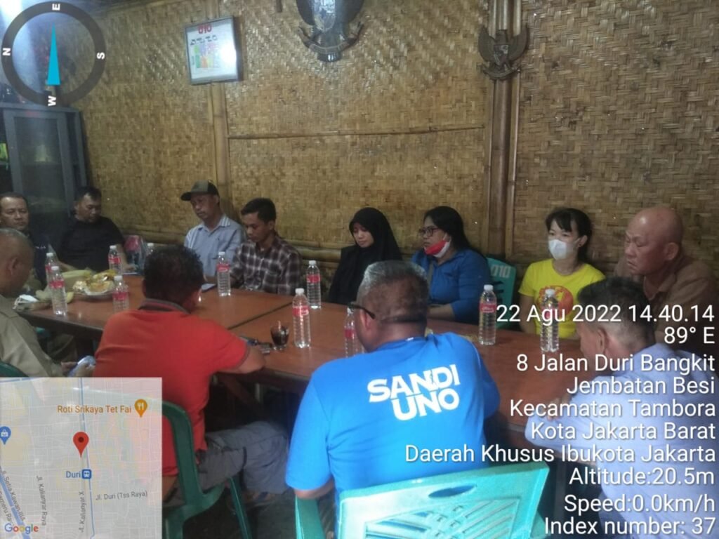 ACTUALNEWS.ID, Kodam Jaya Jakarta -Babinsa Koramil 02/TB Serma Patton CH hadiri rapat tiga pilar dengan pengurus dan tokoh masyarakat wilayah Rw 10 bertempat Kantor Sekertariat Rw 10 Jln Jembatan Besi XII Rt 04 Rw 10, Kel Jembatan Besi, Kec Tambora, Jakarta Barat.Senin (22/8).