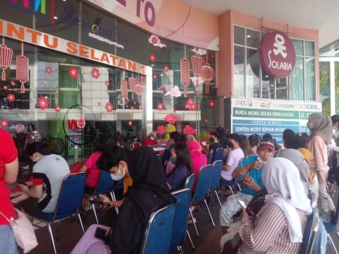 Babinsa Koramil 02/TB Kodim 0503/JB Monitoring Kegiatan Serbuan Vaksinasi BIN di Mall Season Citty