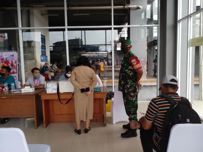 ACTUALNEWS.ID, Kodam Jaya Jakarta -Babinsa Koramil 02/TB Kodim 0503/JB Sertu Mulyana monitoring kegiatan vaksinasi bagi masyarakat umum yang di selenggarakan Binda DKI Korwil Jakarta Barat yang dipimpin Kolonel Inf. Johanes Mahoro K dalam rangka pemulihan kesehatan masyarakat bertempat di Stasiun Duri Jl.Duri Utara Kel.Duri Utara Kec.Tambora Jakarta Barat.Selasa (28/6)