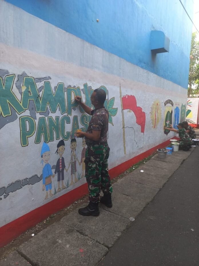 “Kegiatan pembersihan dan pengecatan ini agar Kampung pancasila ini terlihat rapi dan bersih karena kampung pancasila sebagai contoh Kampung yang hidup rukun dan damai”. Ujar Babinsa.