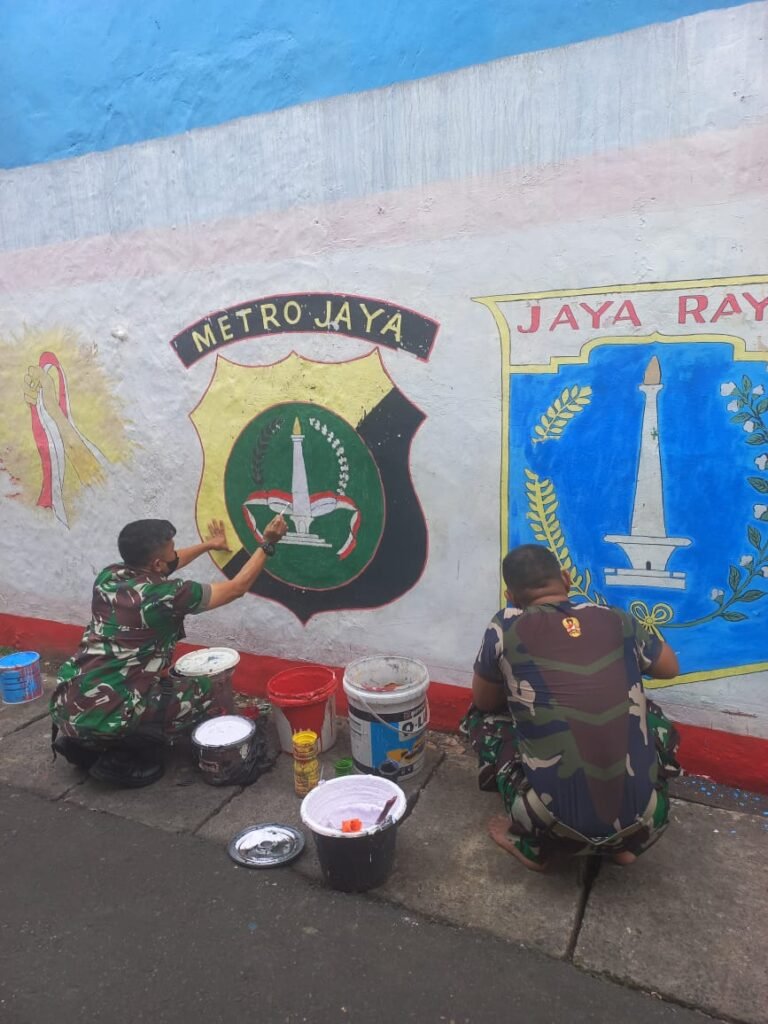 Bentuk nyata kehadiran Babinsa di wilayah binaan dengan melaksanakan pembersihan dan pengecatan di Kampung pancasila Jl.Kalianyar 1 Rt.001 Rw.09.Kel.Kalianyar Kec.Tambora.