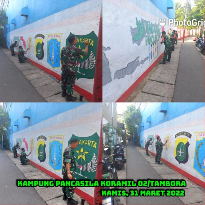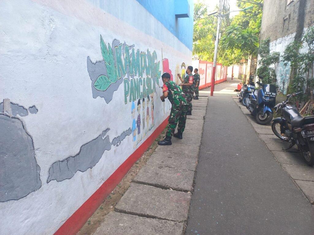 ACTUALNEWS.ID, Jakarta – Wajah Kampung Pancasila terlihat cantik dan rapi setelah di cat dan di bersihkan oleh Babinsa Koramil 02/Tambora Serda Abd Kadar dan Serda Chandra bersama dengan warga sekitar Kampung Pancasila