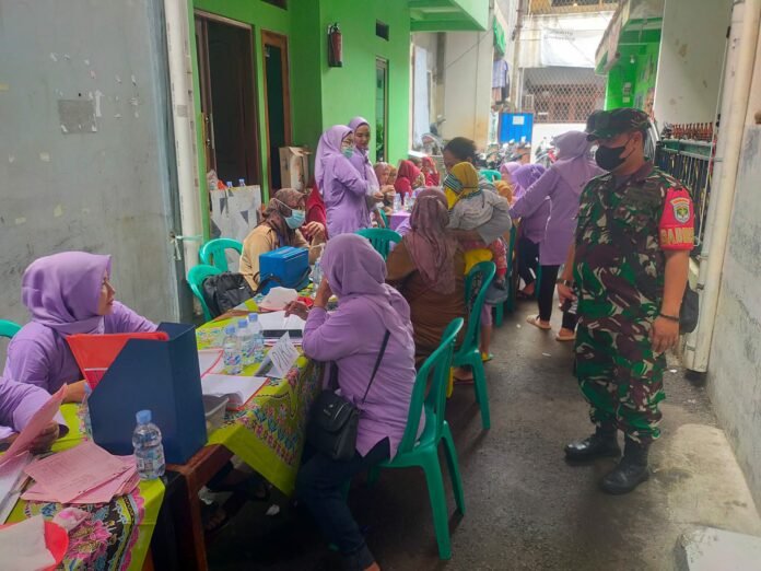 ACTUALNEWS.ID, Kodam Jaya Jakarta -Puskesmas kelurahan Angke yang dipimpin Bidan Syaifa bekerjasama dengan kelurahan Angke mengadakan Posbindu Lansia dan Posyandu Imunisasi balita guna menjaga anak dan Ibu tetap sehat dengan dimonitoring Babinsa Koramil 02/TB Serma Mi’an dan Serda Sarip.