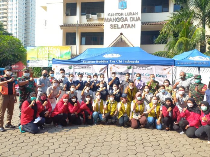 ACTUALNEWS.ID, Jakarta Pusat – Babinsa Koramil 02/Sawah Besar menyalurkan bingkisan sembako dari Yayasan Buddha Tzu Chi Indonesia kepada masyarakat, di kelurahan Mangga Dua Selatan, Sawah Besar, Jakarta Pusat, Minggu (10/4/2022).