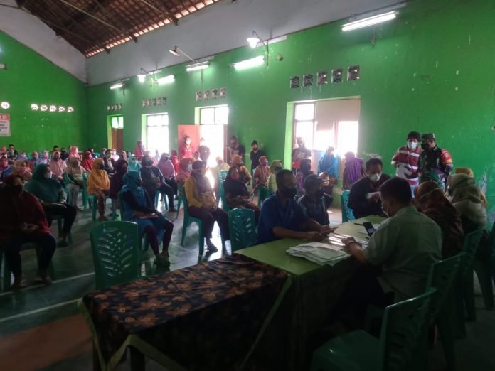 ACTUALNEWS.ID, Sragen – 29 Agustus 2021 pukul 09.00 s/d selesai, Babinsa Desa Mojorejo Koramil 02/Karangmalang Kodim 0725/Sragen Serma Budi Santoso melaksanakan pemantauan Pencairan Bantuan Sosial Tunai ( BST ) Kemensos via PT. POS Indonesia ( persero ) untuk bulan Mei dan Juni th 2021 kepada KPM (Keluarga Penerima Manfaat) Kec. Karangmalang yang bertempat di Aula Kec. Karangmalang.