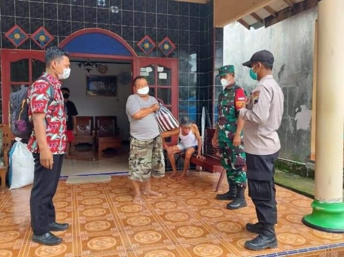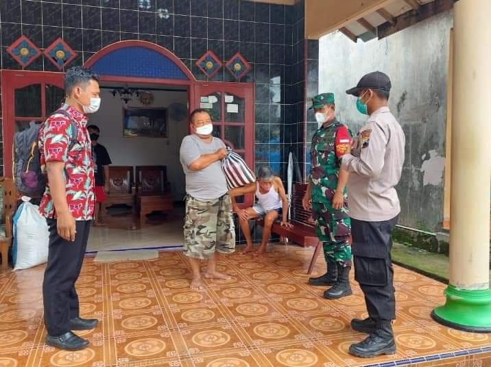 Babinsa Serka Mulyono bersama pemerintah Desa Sembungan langsung menyerahkan bantuan berbentuk paket sembako kepada warga yang melaksanakan isolasi mandiri.