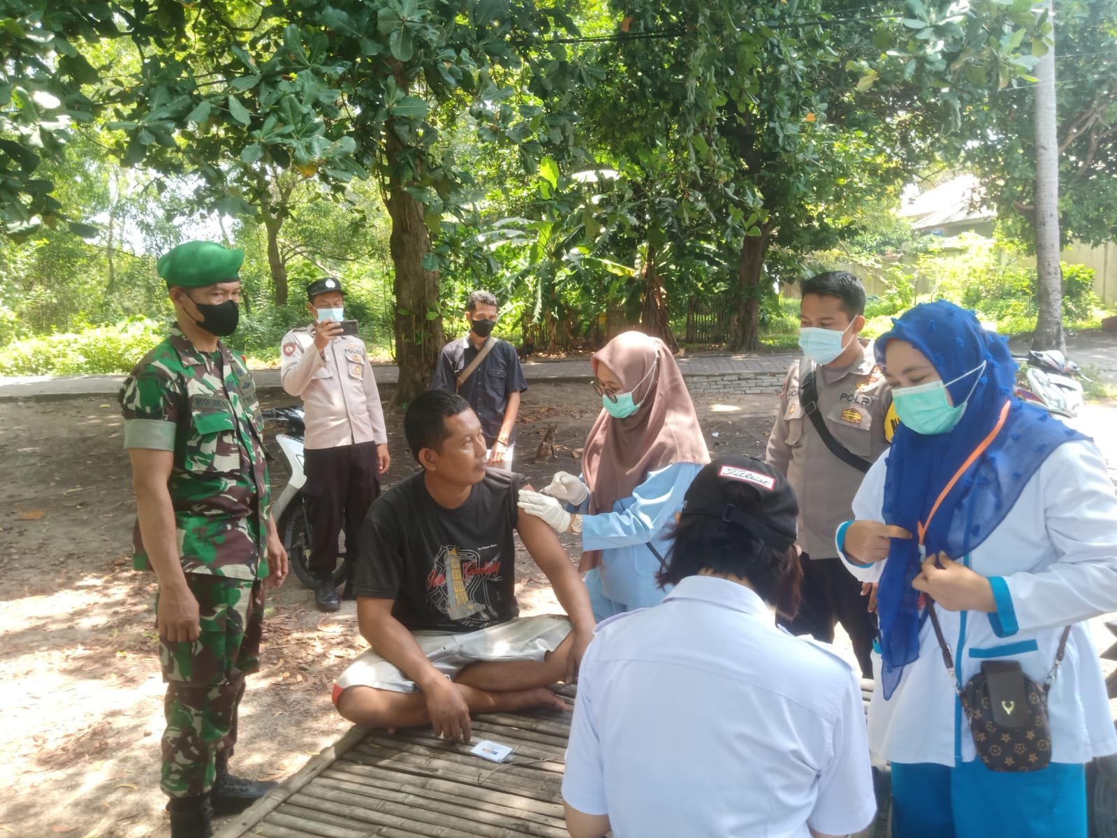 Hal ini di implementasikan oleh Babinsa Pulau Tidung, Serda Sidik Waluyo Anggota Koramil 04/KS Kodim 0502/JU bersama Bhabinkamtibmas berperan aktif memberikan pendampingan agar kegiatan penyuntikan vaksin dapat berjalan dengan baik dan lancar sesuai tahapan.