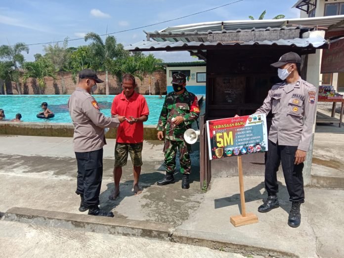 Kali ini, Minggu (12/12/2021) Babinsa Koramil 13 Nogosari Kodim 0724/Boyolali  Sertu Edy Sarjono melaksanakan operasi yustisi di Kolam Renang Dk Ringin Pitu Rt 01 Rw 02 Ds Ketitang, Kecamatan Nogosari Kabupaten Boyolali.