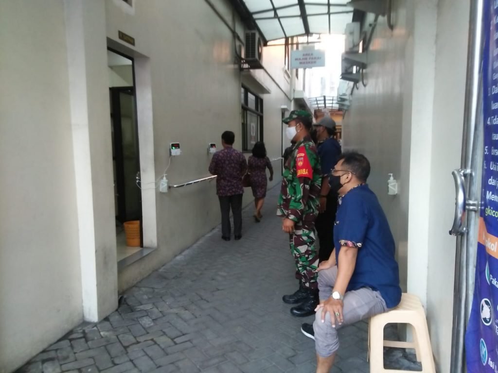 Maka Babinsa Kelurahan Serengan Koramil 03 Serengan Kodim 0735/Surakarta Sertu E Lau We Melaksanakan Pengamanan sekaligus cek Protokol Kesehatan saat Kebaktian atau Ibadah Minggu yang bertempat di GKIM Serengan, jln Yusditira no 29 Serengan Kota Surakarta, (16/05)