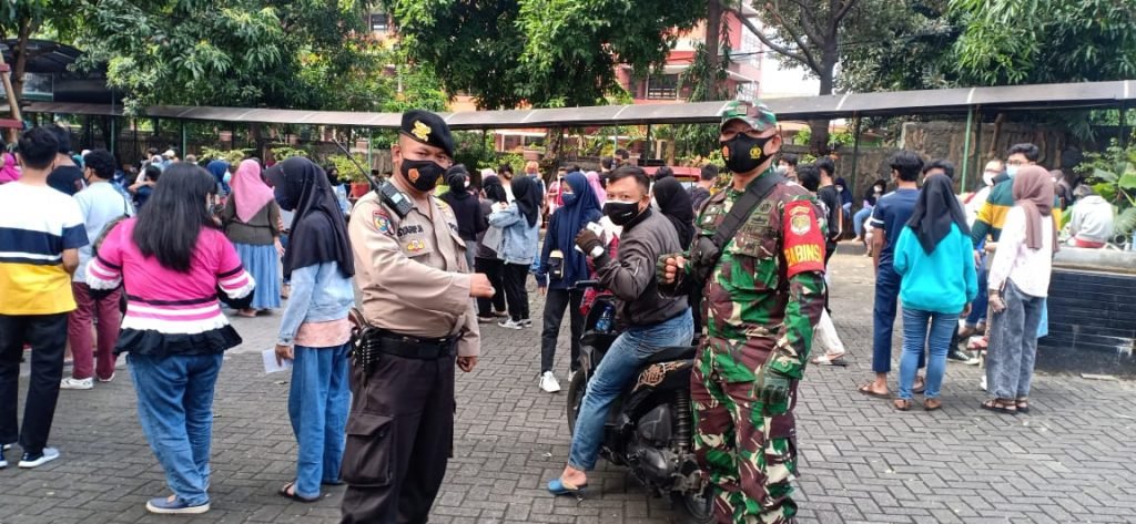 ACTUALNEWS.ID,Jakarta – Babinsa Koramil 02/Matraman Serda Ahmad Nizam, Koptu Erwin bersama Bhabinkamtibmas Bripka Syarif melaksanakan pedampingan pelaksanaan Vaksinasinasi Tahap I bagi Remaja usia 12 sampai dengan 19 tahun yang dilaksanakan oleh Puskesmas Kecamatan Matraman dengan jumlah kuota 350 orang, bertempat di SMA 31 Jln.Kayu Manis timur RT.16/14 Kelurahan Utan kayu Selatan, Kecamatan Matraman, Kamis (08/07/21).