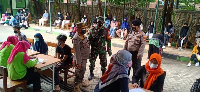 ACTUALNEWS.ID,Jakarta – Babinsa Koramil 02/Matraman Serda Ahmad Nizam, Koptu Erwin bersama Bhabinkamtibmas Bripka Syarif melaksanakan pedampingan pelaksanaan Vaksinasinasi Tahap I bagi Remaja usia 12 sampai dengan 19 tahun yang dilaksanakan oleh Puskesmas Kecamatan Matraman dengan jumlah kuota 350 orang, bertempat di SMA 31 Jln.Kayu Manis timur RT.16/14 Kelurahan Utan kayu Selatan, Kecamatan Matraman, Kamis (08/07/21).
