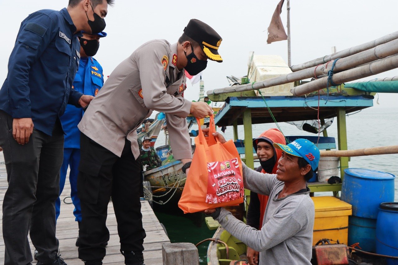 Kapolres Kepulauan Seribu AKBP Eko Wahyu Fredian, S.I.K. terjun langsung untuk memberikan bantuan sosial sembako kepada nelayan Kepulauan Seribu dengan didampingi oleh Kasat Polair dan Kasat Binmas Polres Kepulauan Seribu.