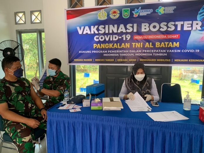 ACTUALNEWS.ID, Batam, 26 Januari 2022,– Dalam rangka mempercepat penanganan Covid-19 di Indonesia, Balai Kesehatan Lanal Batam bekerjasama dengan Puskesmas Tanjung Sengkuang, Batu Ampar, Batam menggelar Vaksinasi Dosis Ketiga jenis Booster Pfizer yang diikuti oleh Prajurit Lanal Batam. Kegiatan tersebut dilaksanakan dalam rangka mendukung program vaksinasi dosis ketiga yang dicanangkan oleh pemerintah.
