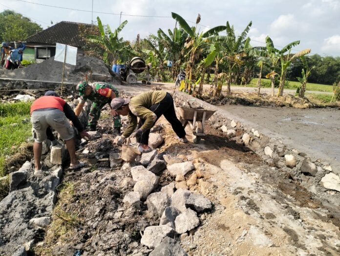 Melihat keadaan yang demikian Serka Tukijan Babinsa Ds.Keden Koramil 18/Kalijambe Kodim 0725/Sragen bersama warga melaksanakan giat Karya Bhakti pembuatan Talud bersama Masyarakat bertempat di lapangan Ds. Keden Kec.Kalijambe, Kamis ( 16/03/2023 )