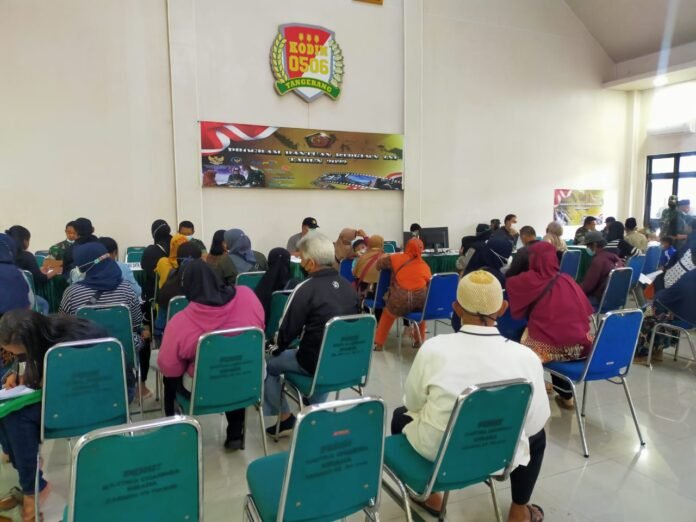 ACTUALNEWS.ID, Kodam Jaya, Tangerang – Membantu pemerintah mengatasi kesulitan masyarakat dari pandemi Covid 19, Kodim 0506/Tgr, Korem 052/Wkr menyalurkan Bantuan Tunai sebanyak 24 ribu Pedagang Kaki Lima Warung dan Nelayan (BTPKLWN). Kegiatan penyaluran dilakukan di Aula Makodim 0506/Tgr Jalan TMP Taruna Kecamatan Tangerang, Kota Tangerang, Jum’at (07/04/2022).