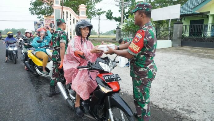 ACTUALNEWS.ID, Sukoharjo,- (29/03/23) Dipimpin Danramil 01 Sukoharjo Kapten Inf Sutrisno, anggota Koramil 01 Sukoharjo Dim 0726/Sukoharjo melaksanakan aksi simpatik membagikan menu Takjil berbuka puasa kepada warga masyarakat yang melintas di seputaran traffic light Carikan dan pasar Cuplik.