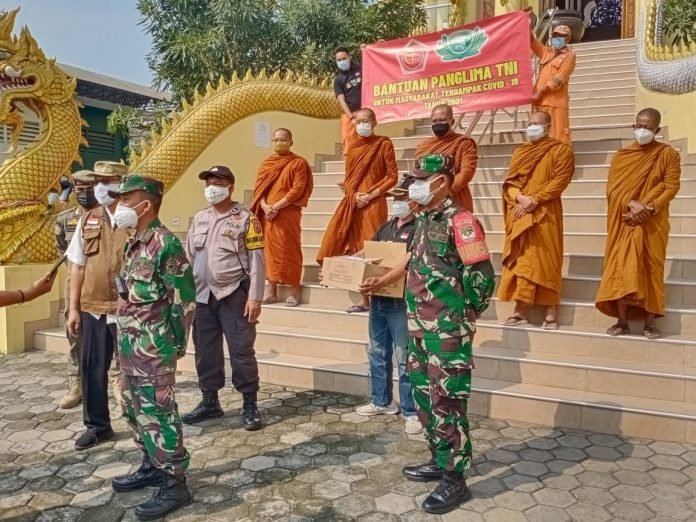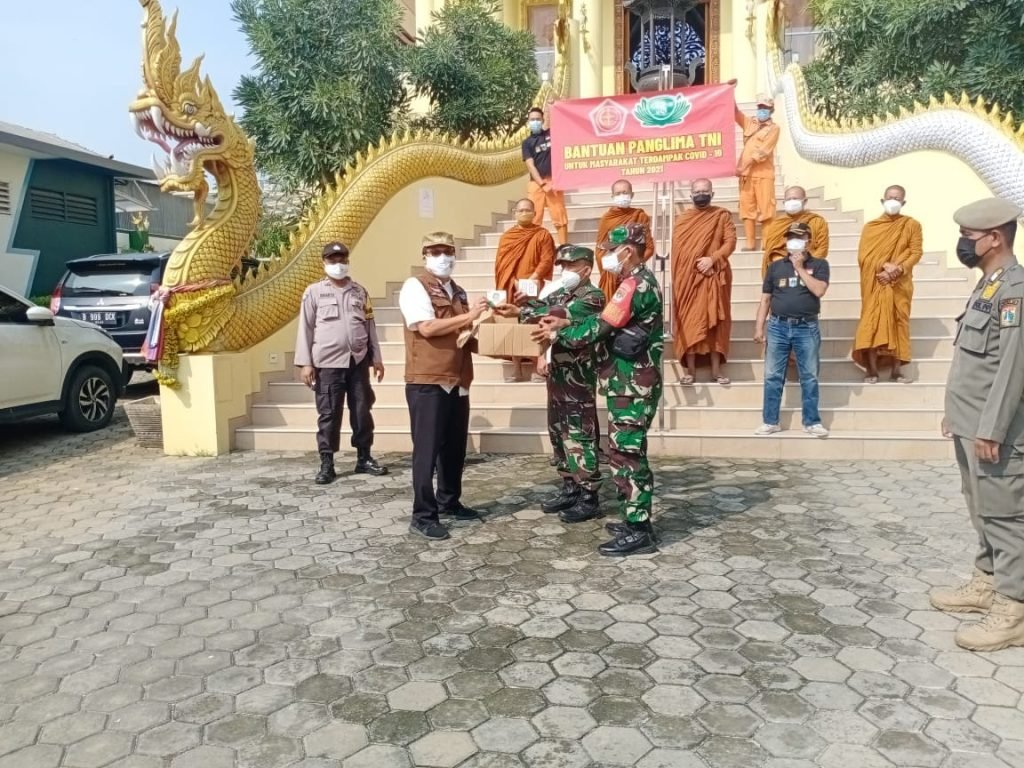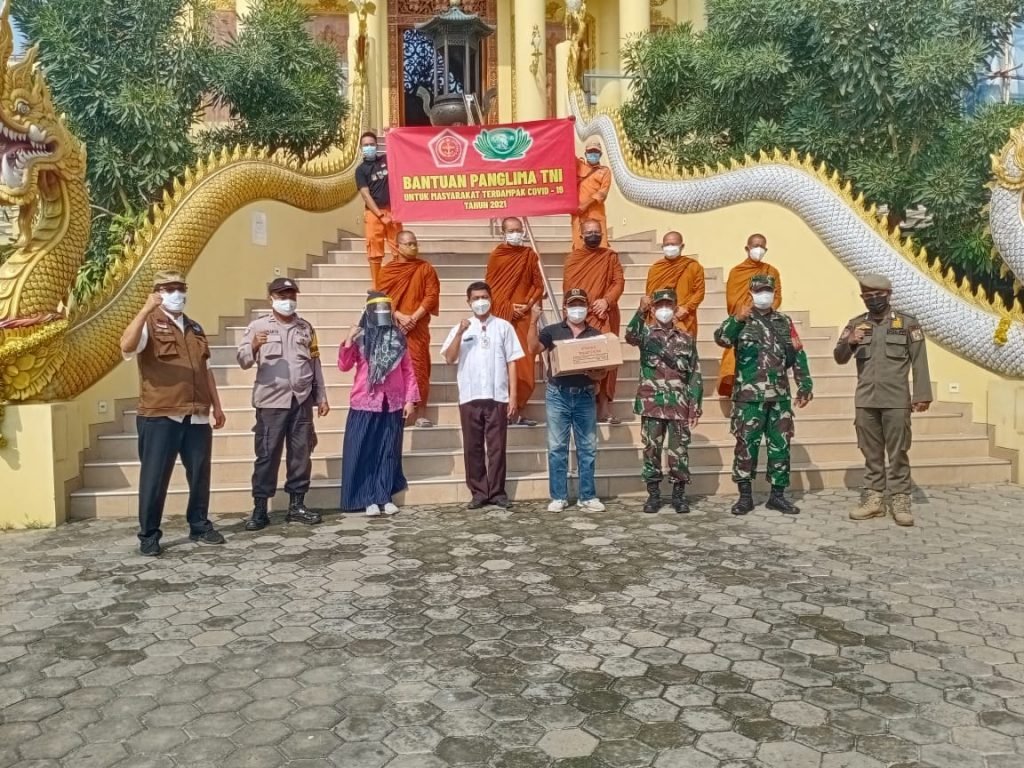 Bertempat di Vhihara Hemadhiro Mettavati, Jalan Kapuk Raya, gang SCB Mawar, Rt. 07/01, Kel. Kapuk ,Kec Cengkareng, Jakarta Barat, Plh Danramil 04/Cengkareng Kodim 0503/Jakarta Barat, Kapten Inf Rahmat menyerahkan secara simbolis bantuan obat dan vitamin dari TNI kepada Lurah Kapuk, Ujang Sungkawa M.SI.