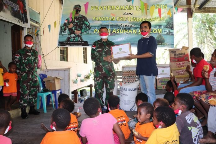 ACTUALNEWS.ID, Papua – Panglima Kodam XVII/Cenderawasih Mayjen TNI Ignatius Yogo Triyono, M.A kembali menggelar bhakti sosial untuk berbagi kasih kepada anak-anak Panti Asuhan Syalom di Arso 8, Distrik Arso Kabupaten Keerom, Senin (23/8/2021).