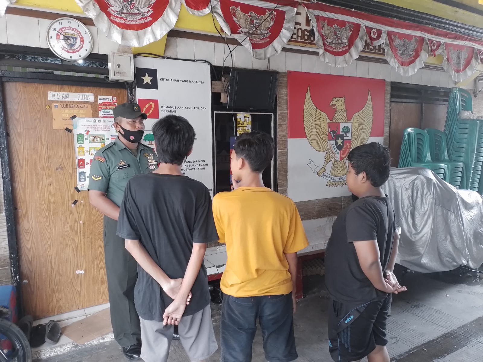 ACTUALNEWS ID, Kodam Jaya, Kodim 0503/JB – Bertempat di Posko Kampung Pancasila Jalan Kampung Jawa Malang, Rt. 015/007, Kel . Keagungan, Kec: Tamansari, Jakarta Barat. Babinsa Serda Abdi Amrizal melaksanakan Wawasan Kebangsaan (Wasbang) anak-anak remaja yang ada di sekitar Pos Pancasila. Rabu, (6/7).
