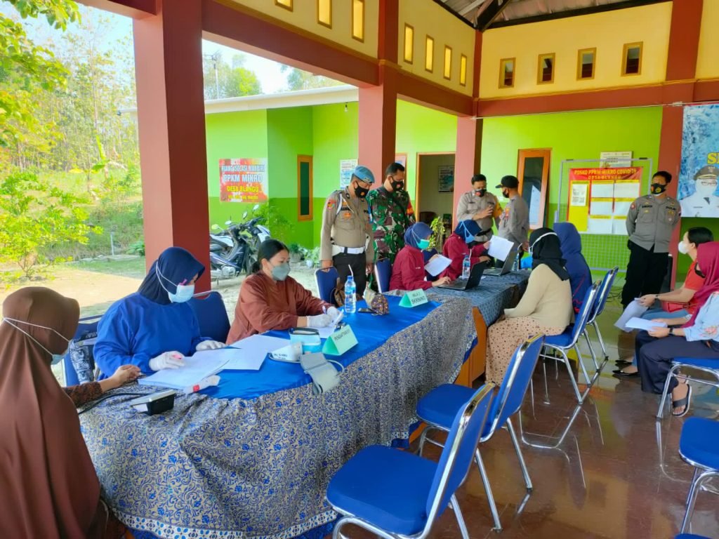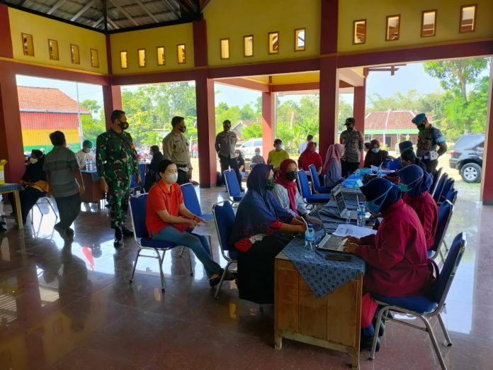 ACTUALNEWS.ID, Sragen – Dalam rangka memutus covid-19 Babinsa Desa Blangu Serda Simon Tri Handoko Koramil 12/Gesi, Kodim 0725/Sragen bersama Bhabinkamtibmas Desa Blangu Polsek Gesi memantau pelaksanaan Vaksinasi bertempat di Puskesmas Gesi, Desa Gesi, Kecamatan Gesi, Kabupaten Sragen, (31/8/21).