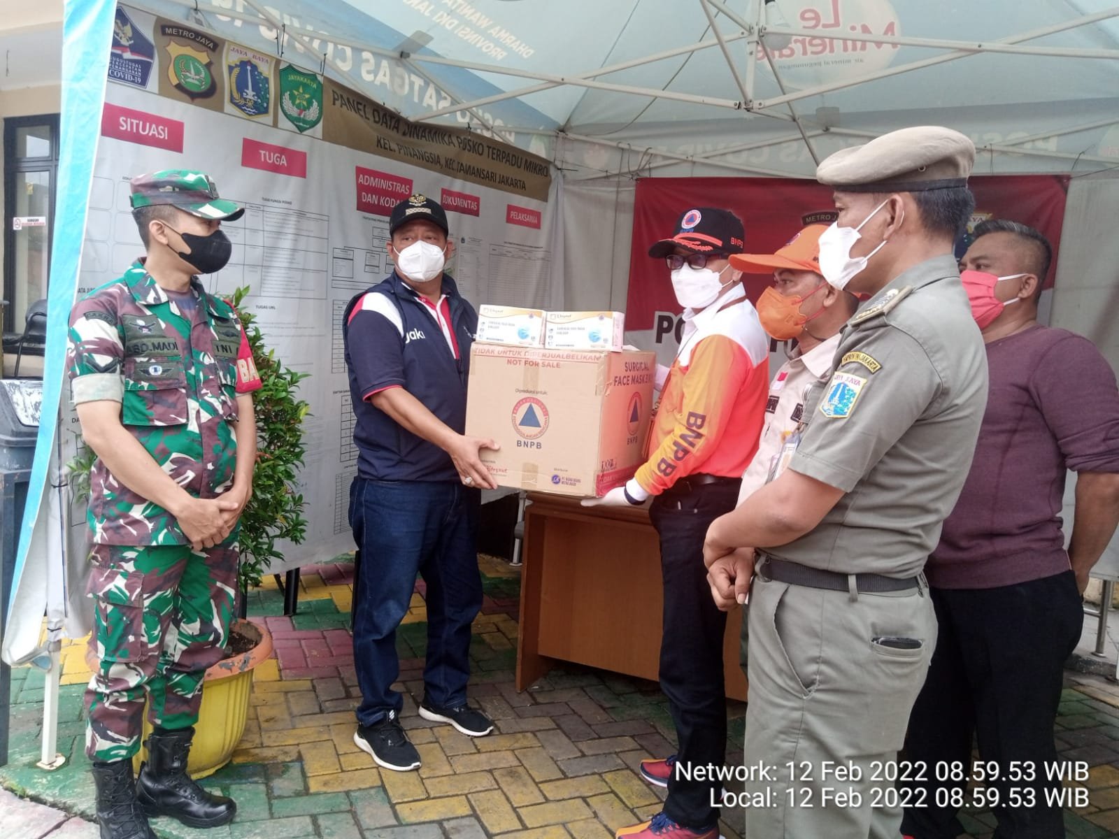 ACTUALNEWS.ID, Jakarta Barat – Kodim 0503/JB.Koramil 01/Tamansari – Tiga Babinsa Koramil 01/Tamansari bersama Badan Nasional Penanggulangan Bencana (BNPB) dan Badan penanggulangan Bencana Daerah (BPBD) sebanyak 10 personil laksanakan giat Pembagian masker dan Hand Sanityzer sebanyak 10.000 Pcs.