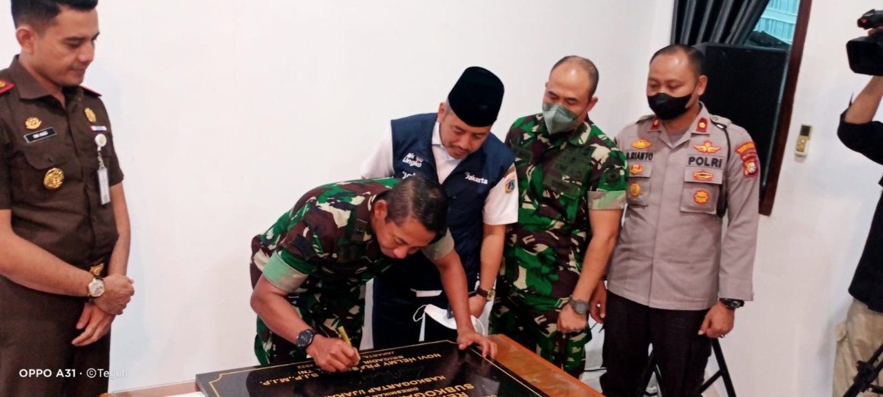 ACTUALNEWS.ID, Kodam Jaya, Jakarta Barat – Dandim 0503/JB, Letkol Kav. I Made Maha Yudhiksa, S. Sos, M. M bersama Kasgartap 1/Jakarta, Brigjen TNI Novi Helmy Prasetya, S. Ip dan Walikota Jakarta Barat, Yani Wahyu Purwoko, Sap., Msi. hadiri Peresmian Kantor Sub Garnisun 0503/JB.