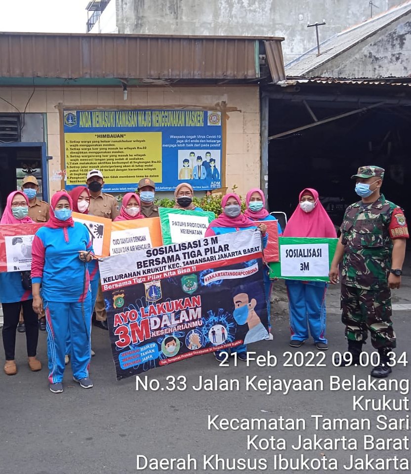ACTUALNEWS.ID, Jakarta – Kodim 0503/JB, Koramil 01/TS – Dalam rangka antisipasi penyebaran Covid-19 dan memutus mata rantai virus covid-19 di wilayah binaan Koramil 01/Tamansari Kodim 0503/Jakarta Barat, tiga pilar tingkat Kelurahan Krukut gelar Ronda covid-19. Senin (21/2/22).