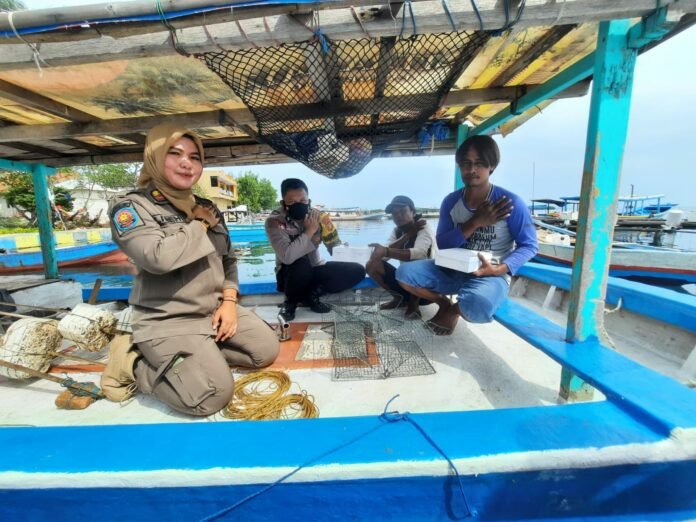 Kali ini Bhabinkamtibmas Pulau Lancang Kepulauan Seribu Selatan Briptu Tulus bersinergi dengan Satpol PP Kelurahan Lancang menyambangi warganya yang berprofesi sebagai nelayan di kapalnya sambil membagikan nasi kotak, Jum’at (06/01/2023).