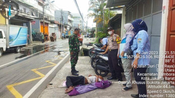 Setibanya di jalan TSS Raya Rt 001/006 Duri selatan Tambora Jakarta barat kemudian menjumpai seorang tunawisma sedang tergeletak tak berdaya.