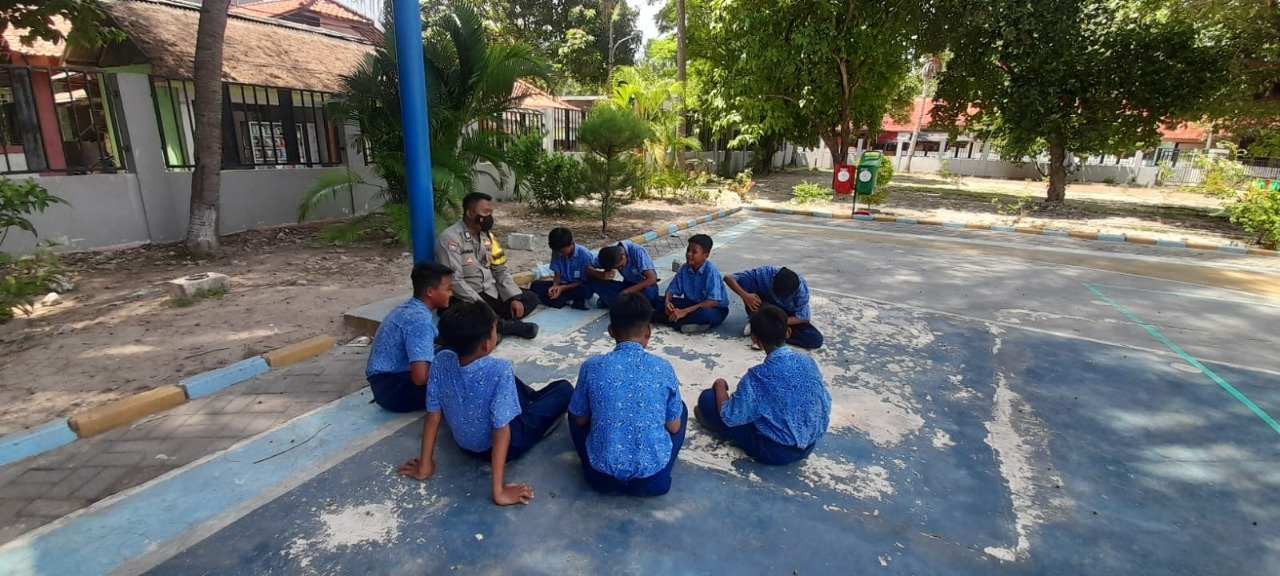 Polres Kepulauan Seribu melalui anggota Bhabinkamtibmas Pulau Pari, Polsek Kepulauan Seribu Selatan, Polres Kepulauan Seribu Bripka Khohim Chovivi melaksanakan kegiatan Police Goes to School di SMPN Satu Atap Pulau Pari , Senin (12/12/2022).