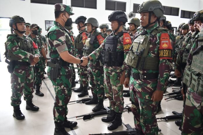 ACTUALNEWS.ID, Tegal – Danrem 071/Wijayakusuma Kolonel Inf Yudha Airlangga, S.E., mewakili Pangdam IV/Diponegoro Mayjen TNI Widi Prasetijono, membuka Latihan Pra Tugas Yonif 407/Padma Kusuma dalam rangka Operasi Satgas Apter Kodim dan Koramil Persiapan diwilayah Kodam XVIII/Kasuari, Kamis (17/11/2022) di Aula Makoyonif 407/Padma Kusuma, Ujung Rusi Kabupaten Tegal.