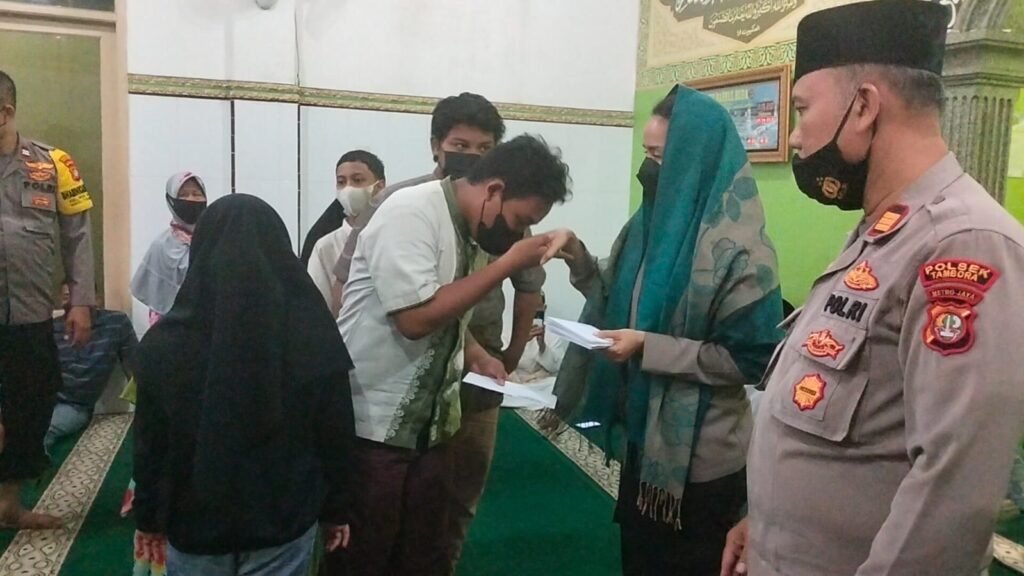 Sebanyak 25 anak yatim piatu, anggota citra bhayangkara dan para relawan mendapat tali asih dari polsek tambora bertempat di mesjid bahrul huda polsek tambora